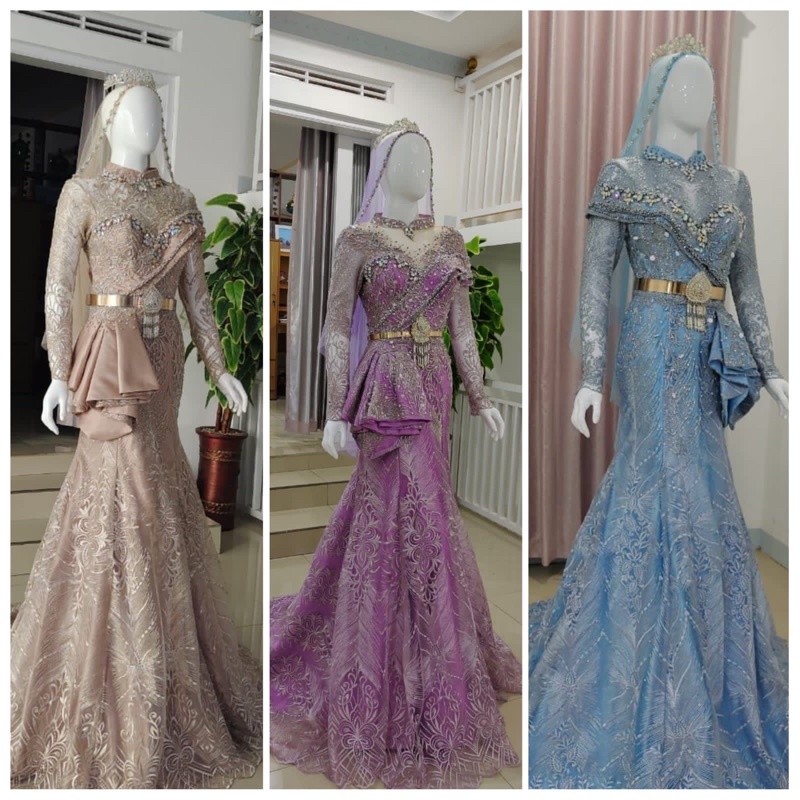 Kebaya pengantin peplum ekor tile cantik muslim murah modern terbaru.